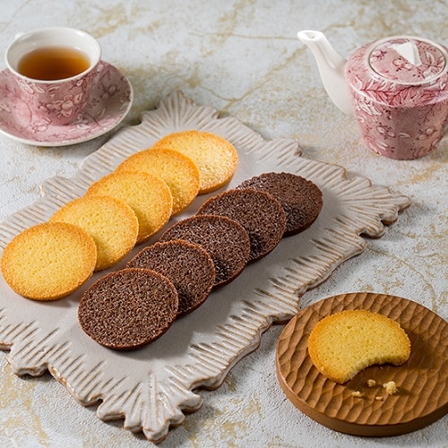 マドレーヌの生地を香ばしく焼き上げた、風味豊かな味わいのラスクです。プレーン・ショコラの詰め合わせとなっています。