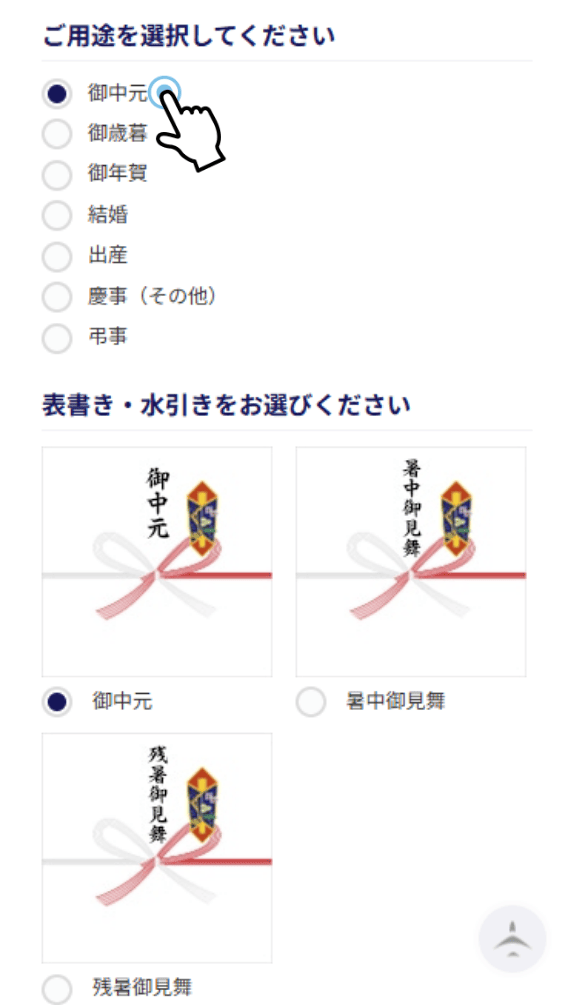 のし設定ページにてお歳暮を選択しお好みのデザイン・名入れ設定をしてください。