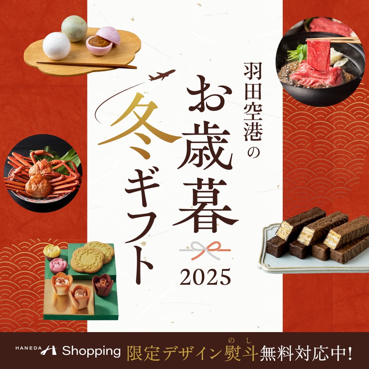 お歳暮をはじめ、大切な方への冬の贈り物に、空港限定デザインの熨斗(のし)を無料でご用意しております。